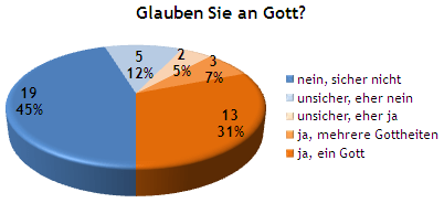 15.10.2019 · der glaube an gott verliert für junge menschen an bedeutung.. 42% glauben an ein höheres wesen oder eine geistige macht, 14% wissen nicht, was sie glauben sollen und 9% glauben weder an einen persönlichen gott noch an ein höheres wesen oder eine geistige macht... 23% / 40% / 17% / 21%.